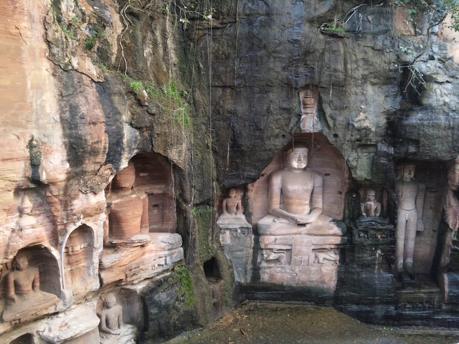 were caves dug out of the rock where there were many Jain statues carved. The statues